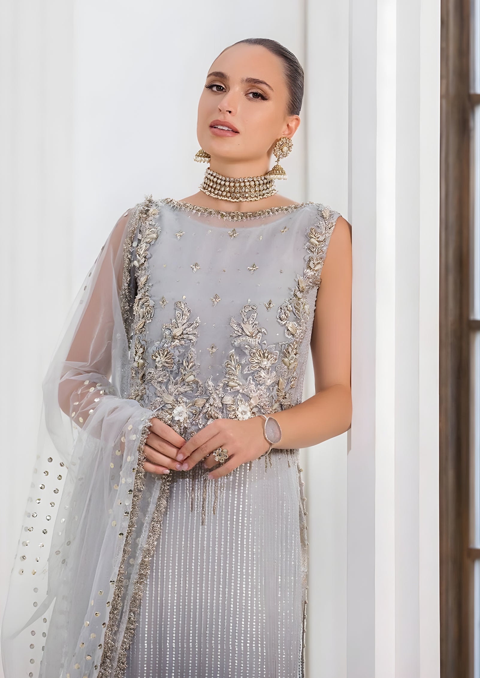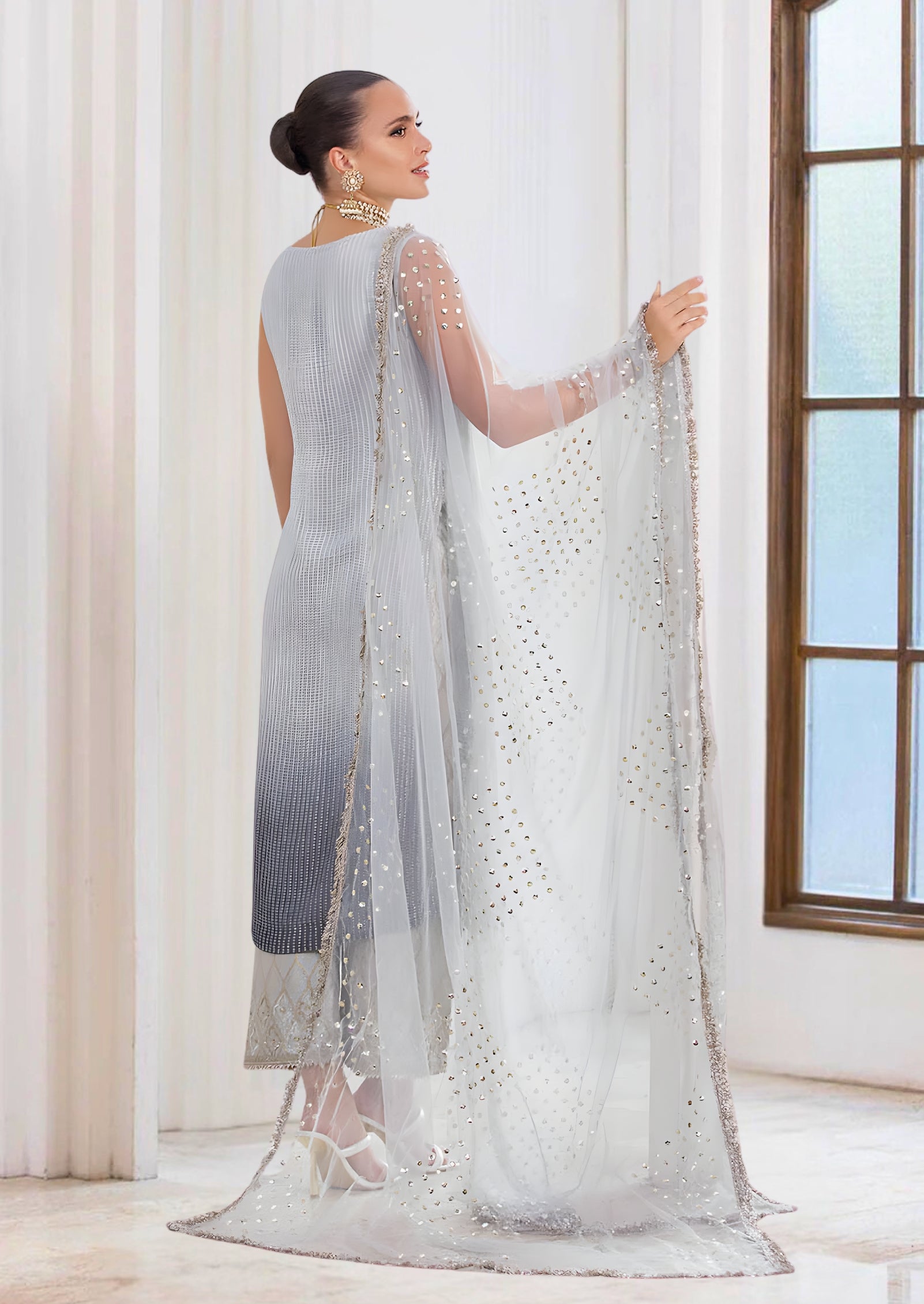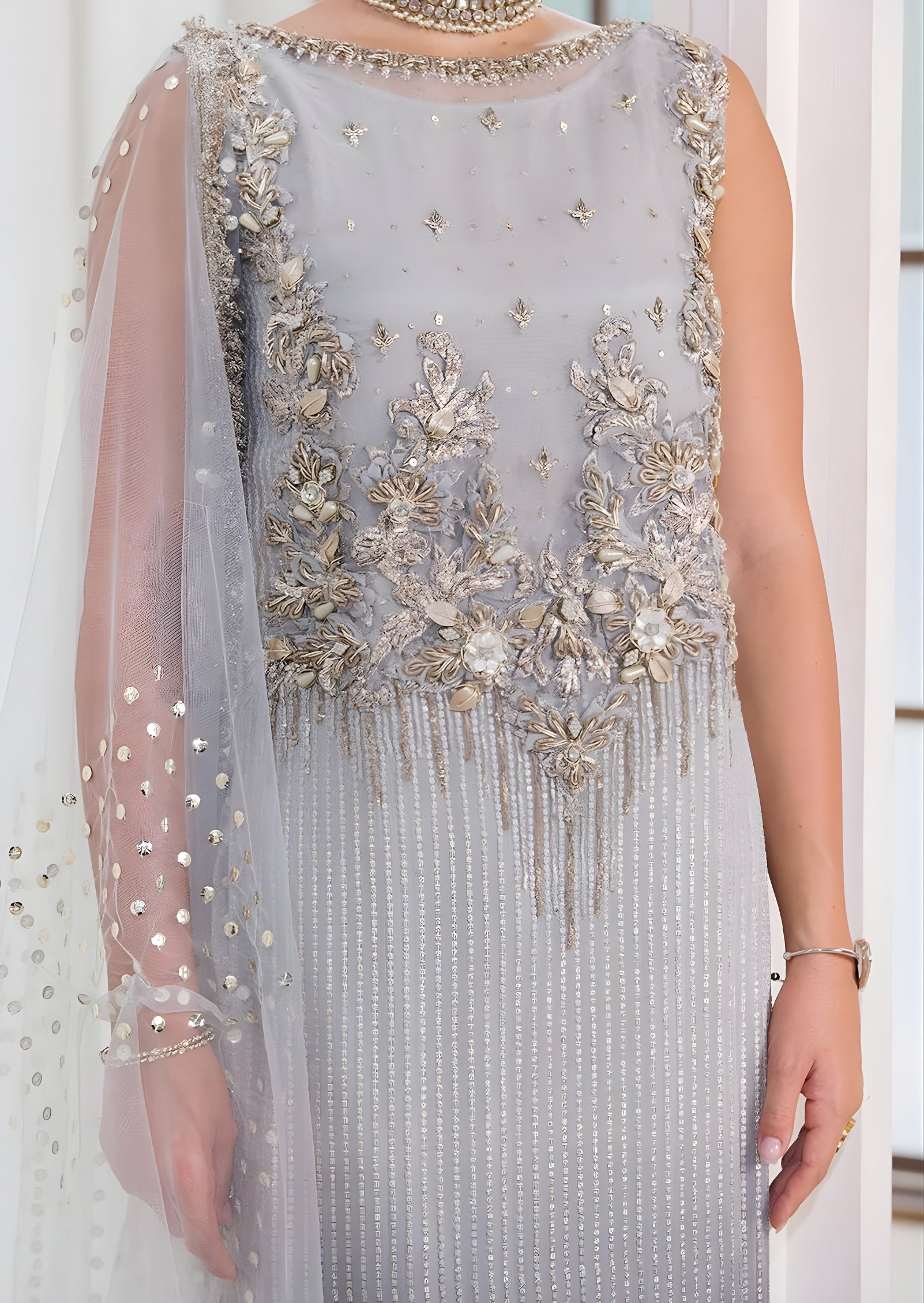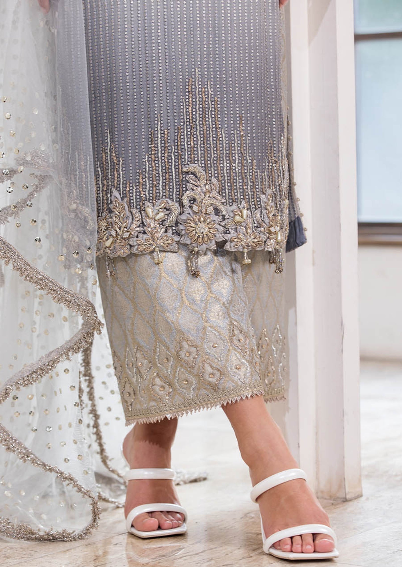 Draped in a celestial shade of silver-black, Moonlit Grace is poetry stitched into form. The delicate embroidery gleams like starlight against still waters — designed for the woman who believes silence can be her loudest luxury.