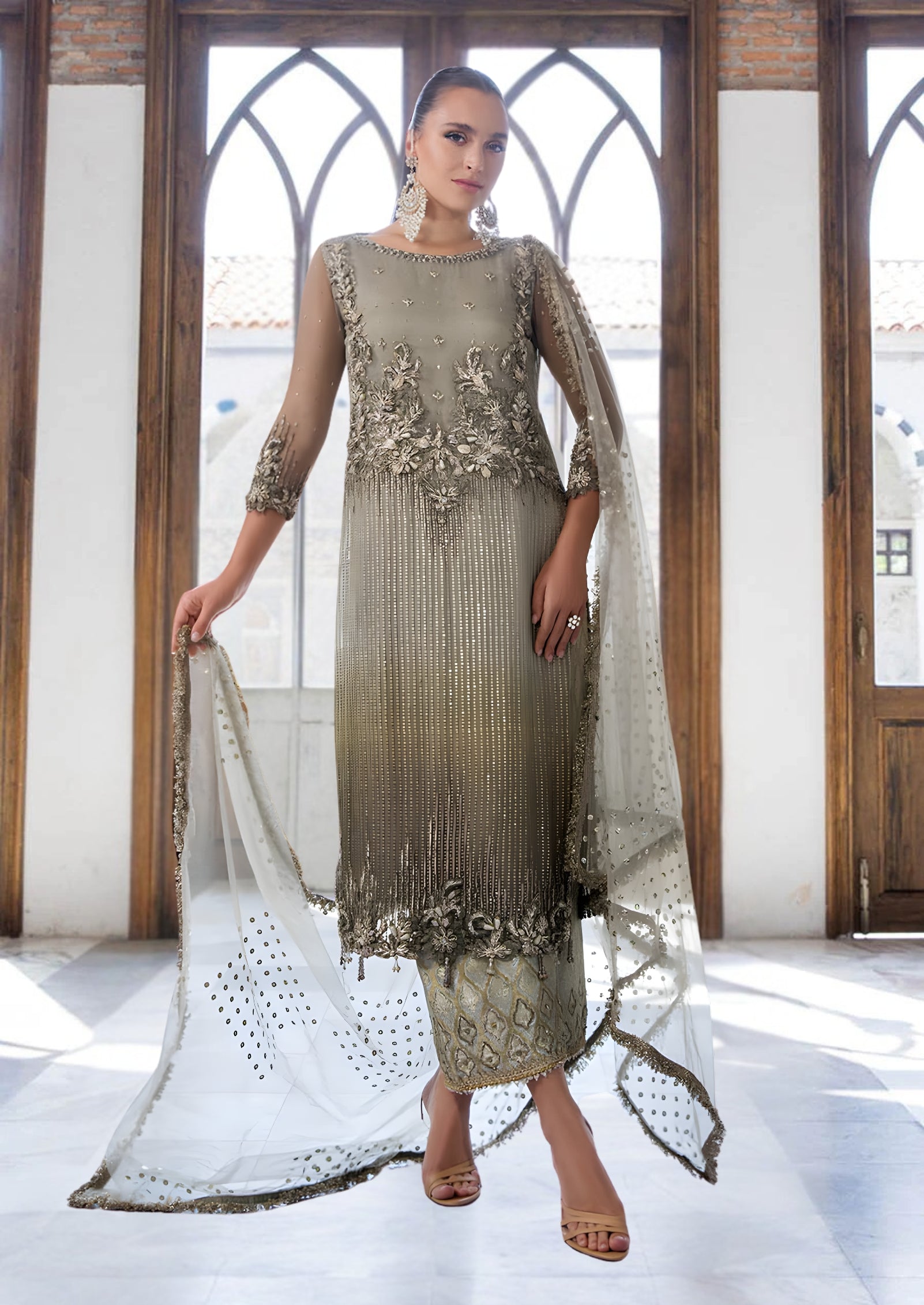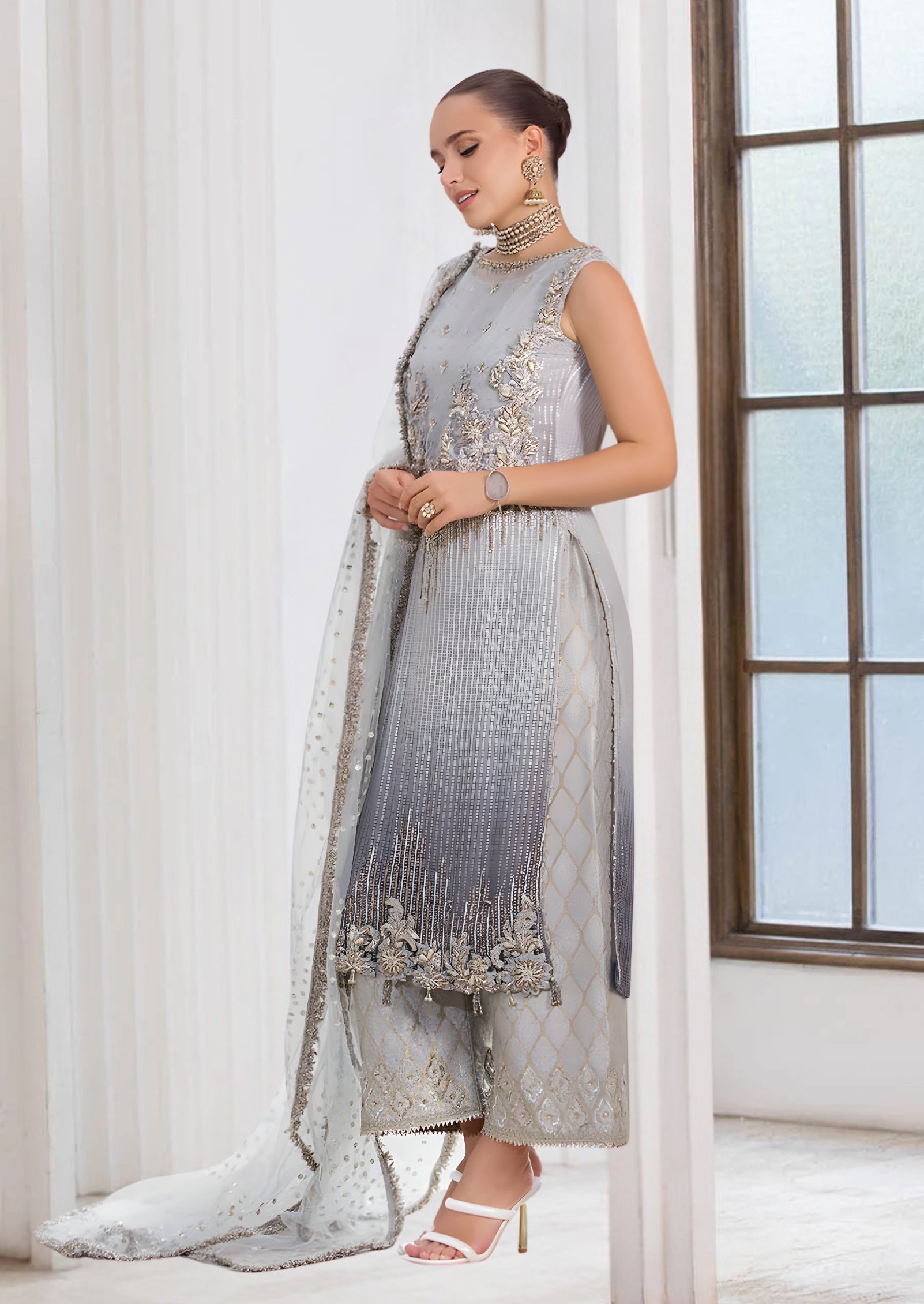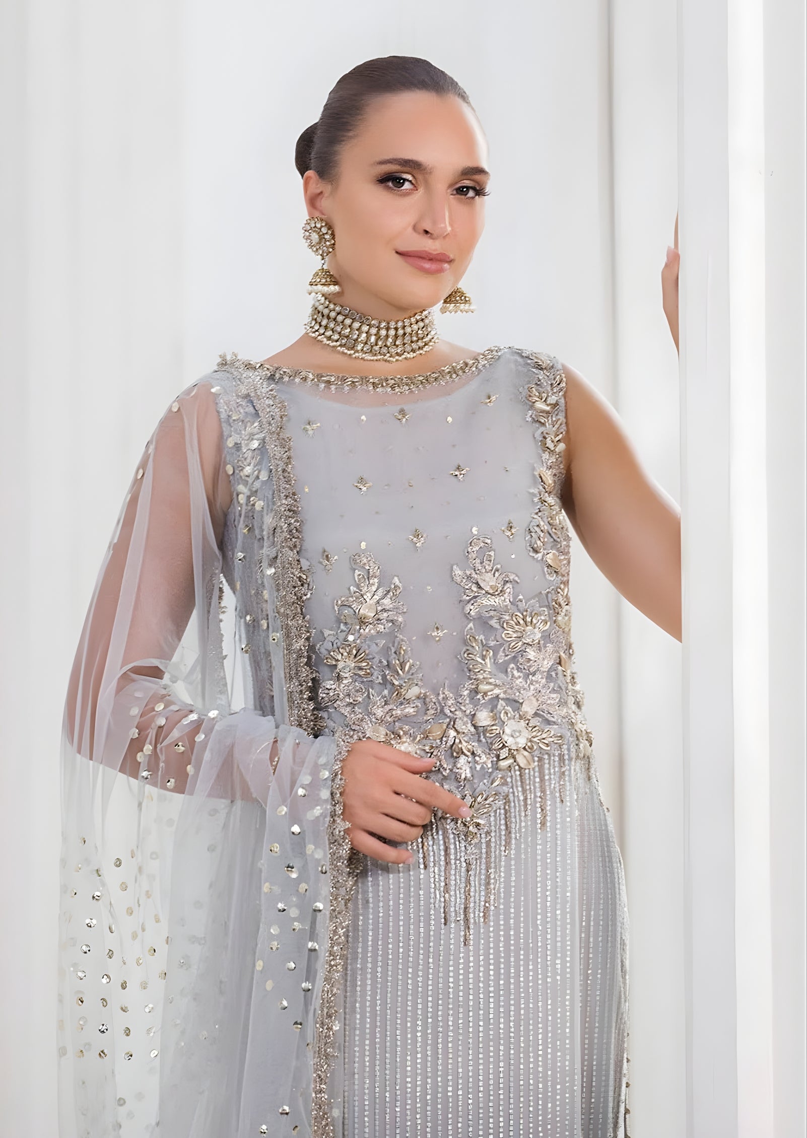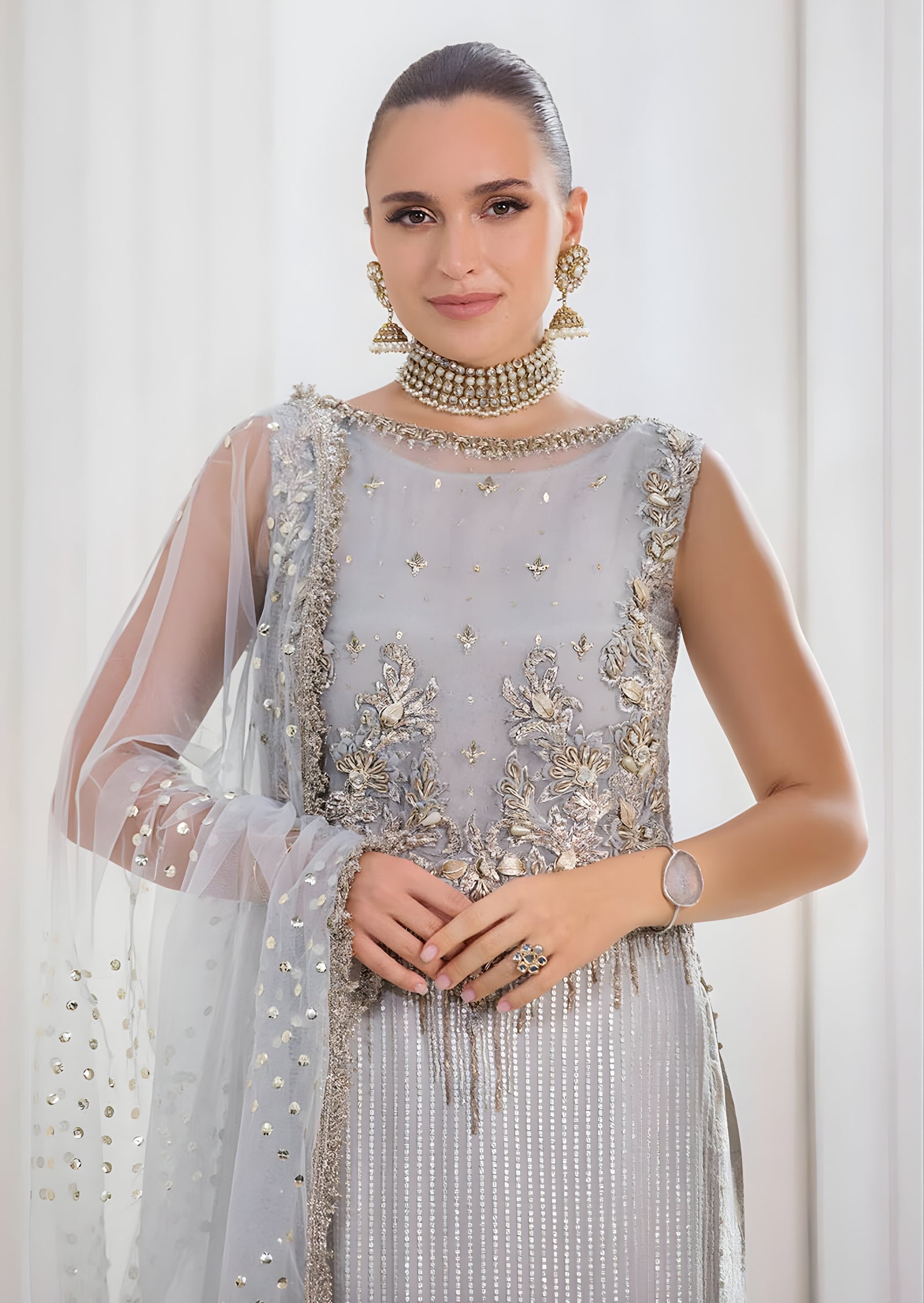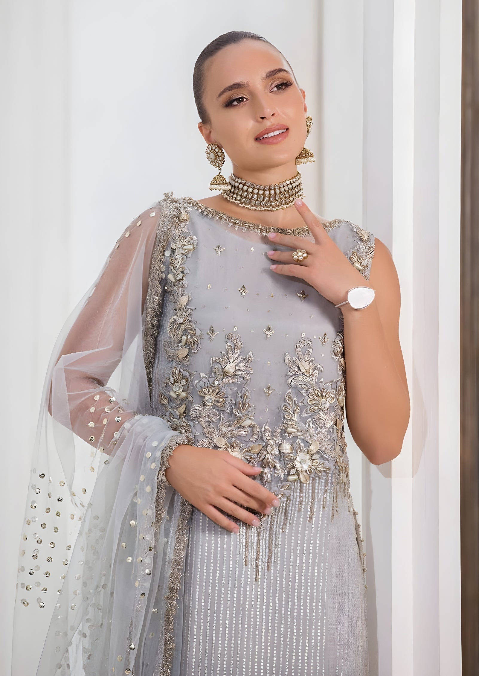 Draped in a celestial shade of silver-black, Moonlit Grace is poetry stitched into form. The delicate embroidery gleams like starlight against still waters — designed for the woman who believes silence can be her loudest luxury.