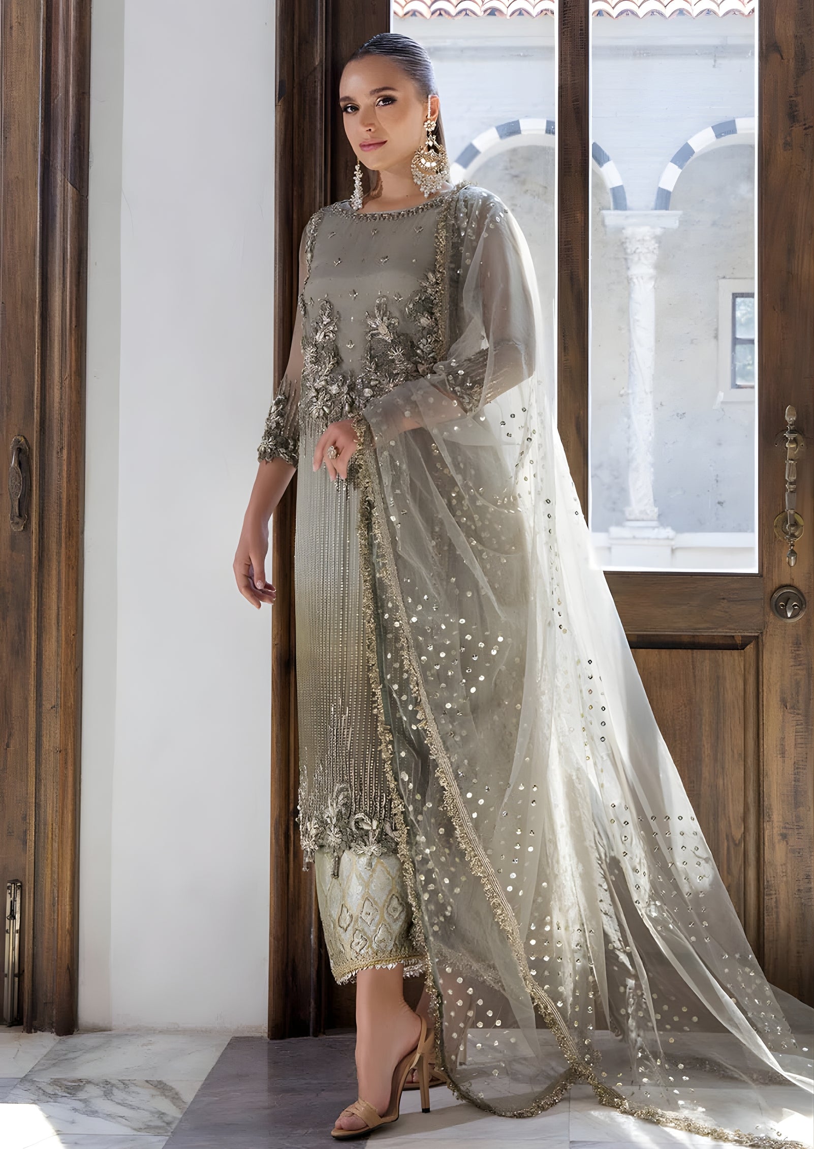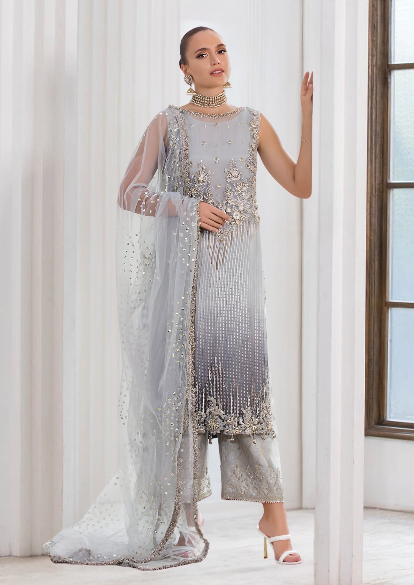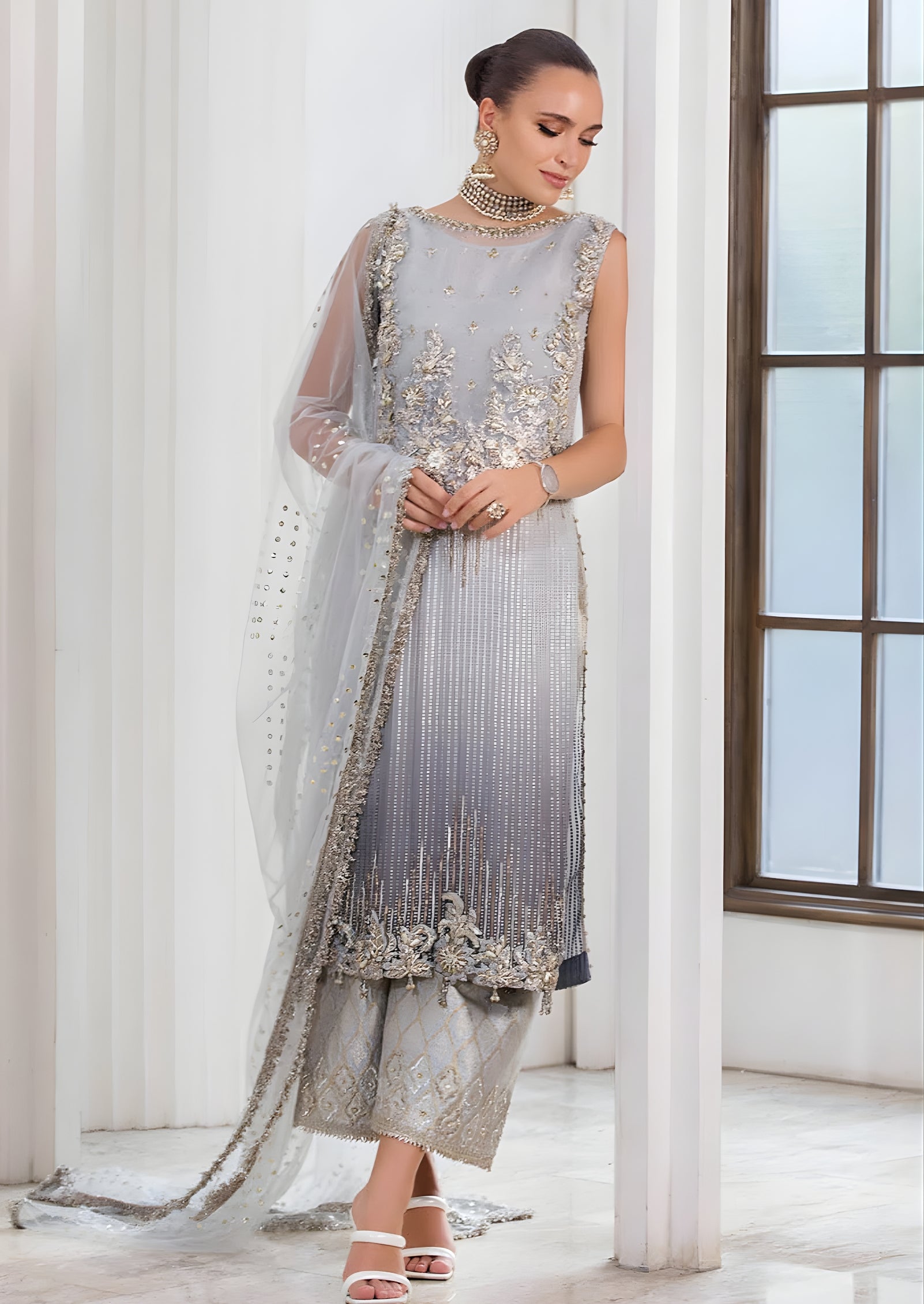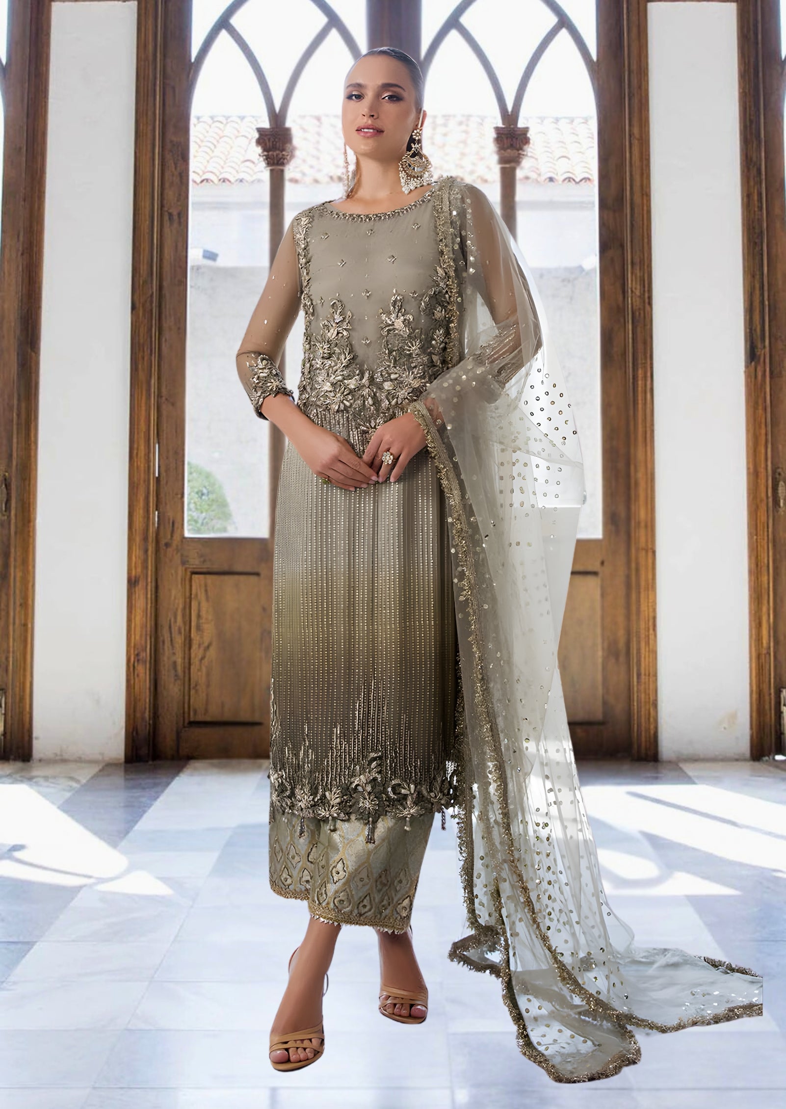 Draped in a celestial shade of silver-black, Moonlit Grace is poetry stitched into form. The delicate embroidery gleams like starlight against still waters — designed for the woman who believes silence can be her loudest luxury.