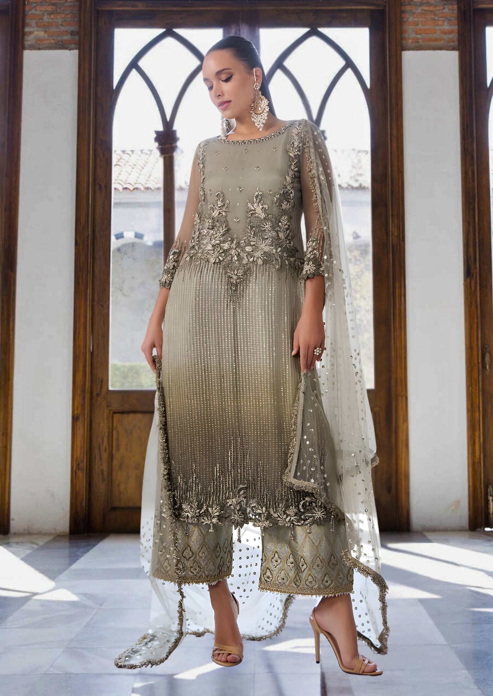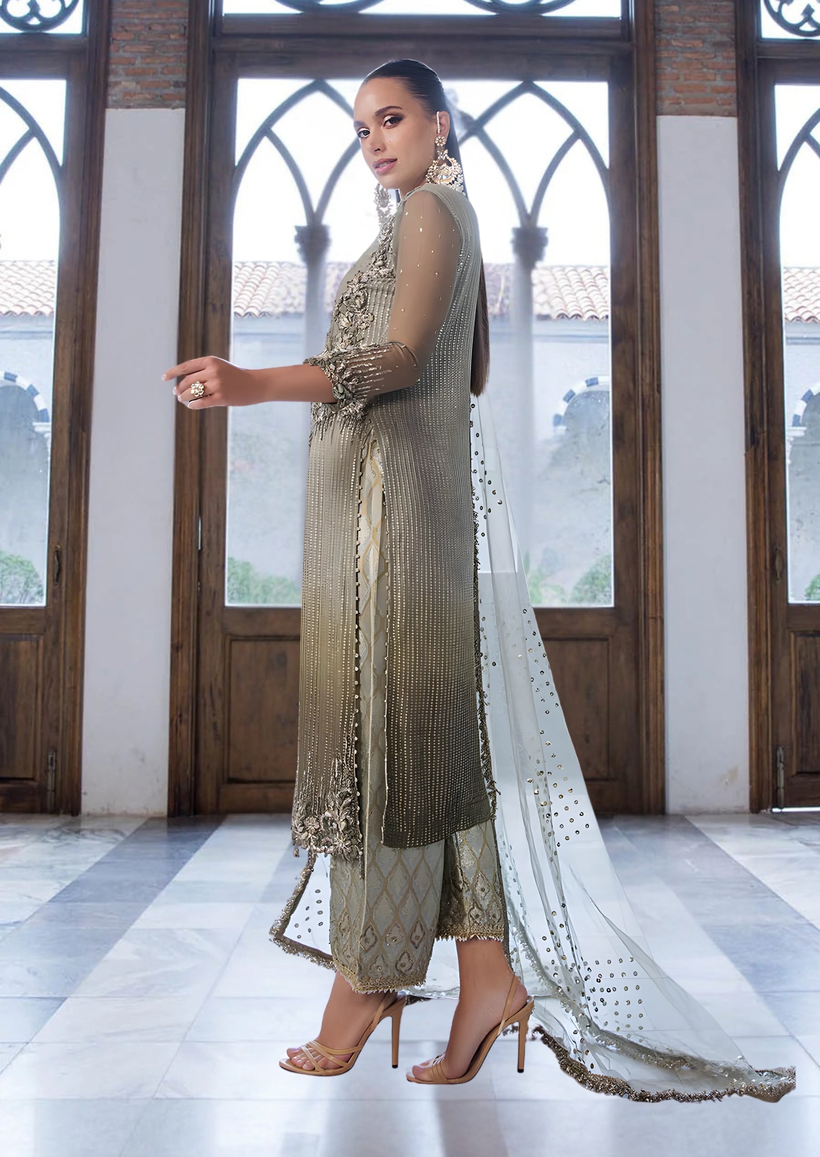 Moonlit Grace is a dialogue between light and shadow that transforms subdued feelings into fashion. The form moves with contemporary grace, the embellishments whisper heritage, and the fabric flows like moonbeams. It's more than just an ensemble; it's a sophisticated display of composed might.