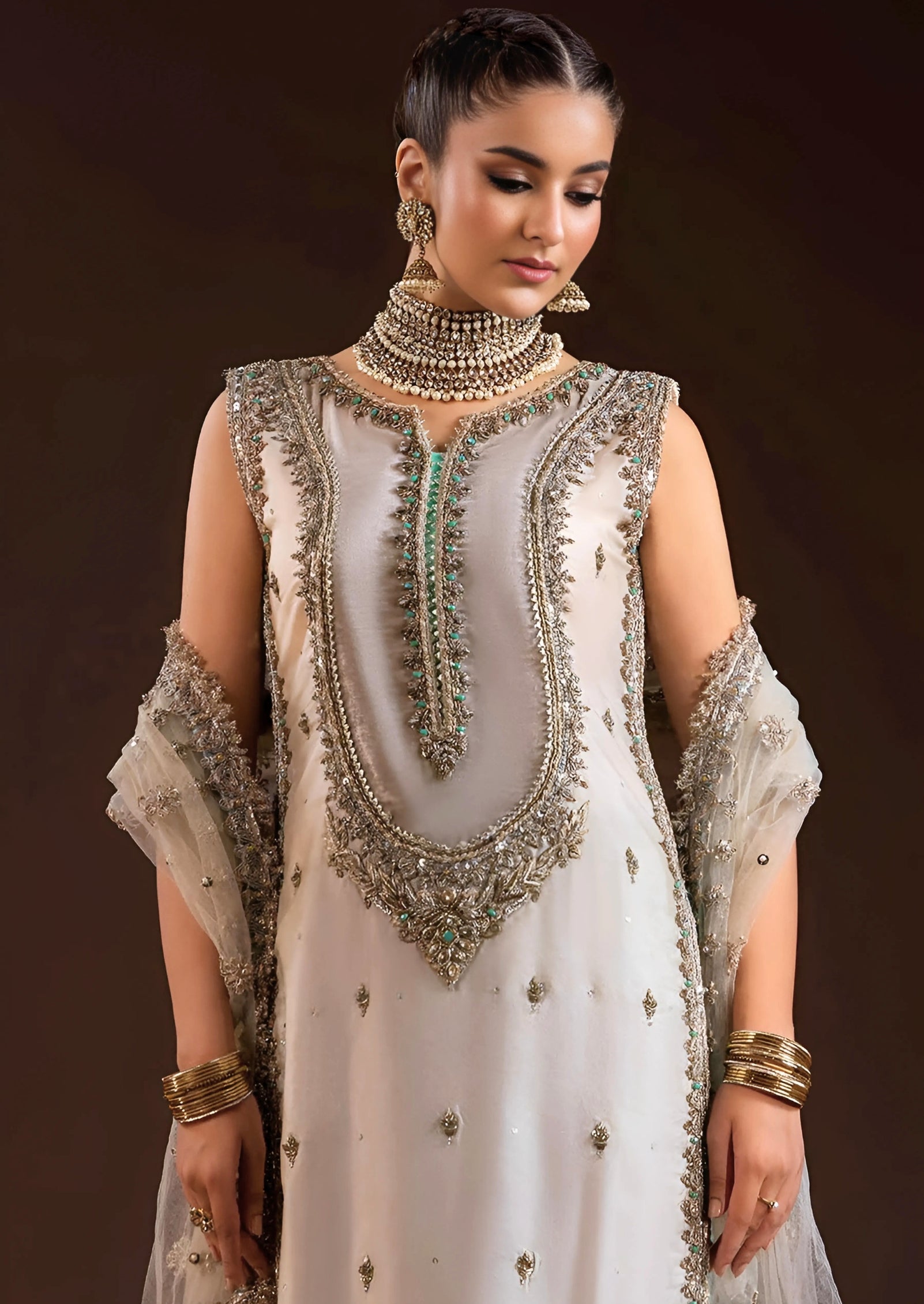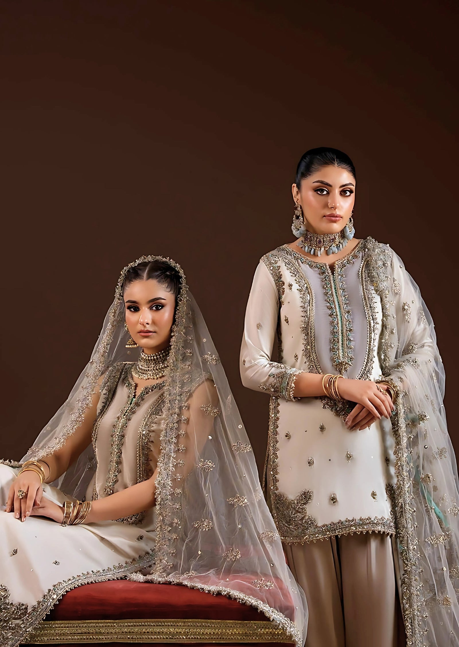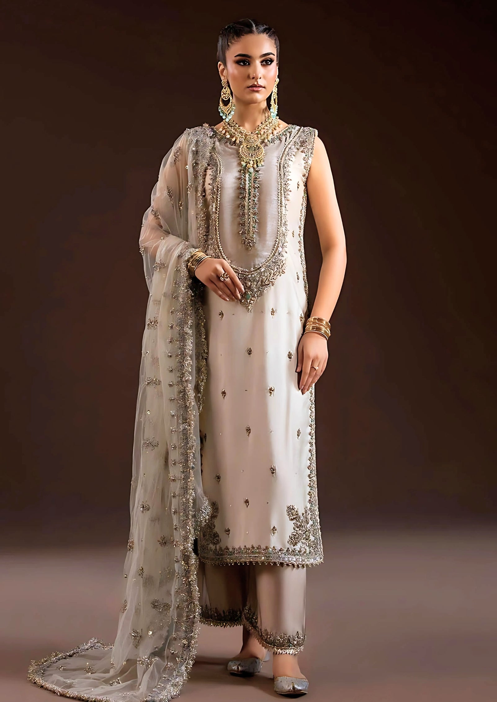 Luxurious Beige color is a classic tribute to refinement, where elegance and grandeur coexist. A sheer dupatta kissed with delicate touches completes the intricately embellished, glossy long shirt that drapes into exquisitely detailed slacks. This design, which was created for weddings and parties, is more than just clothing; it is elegance reimagined...