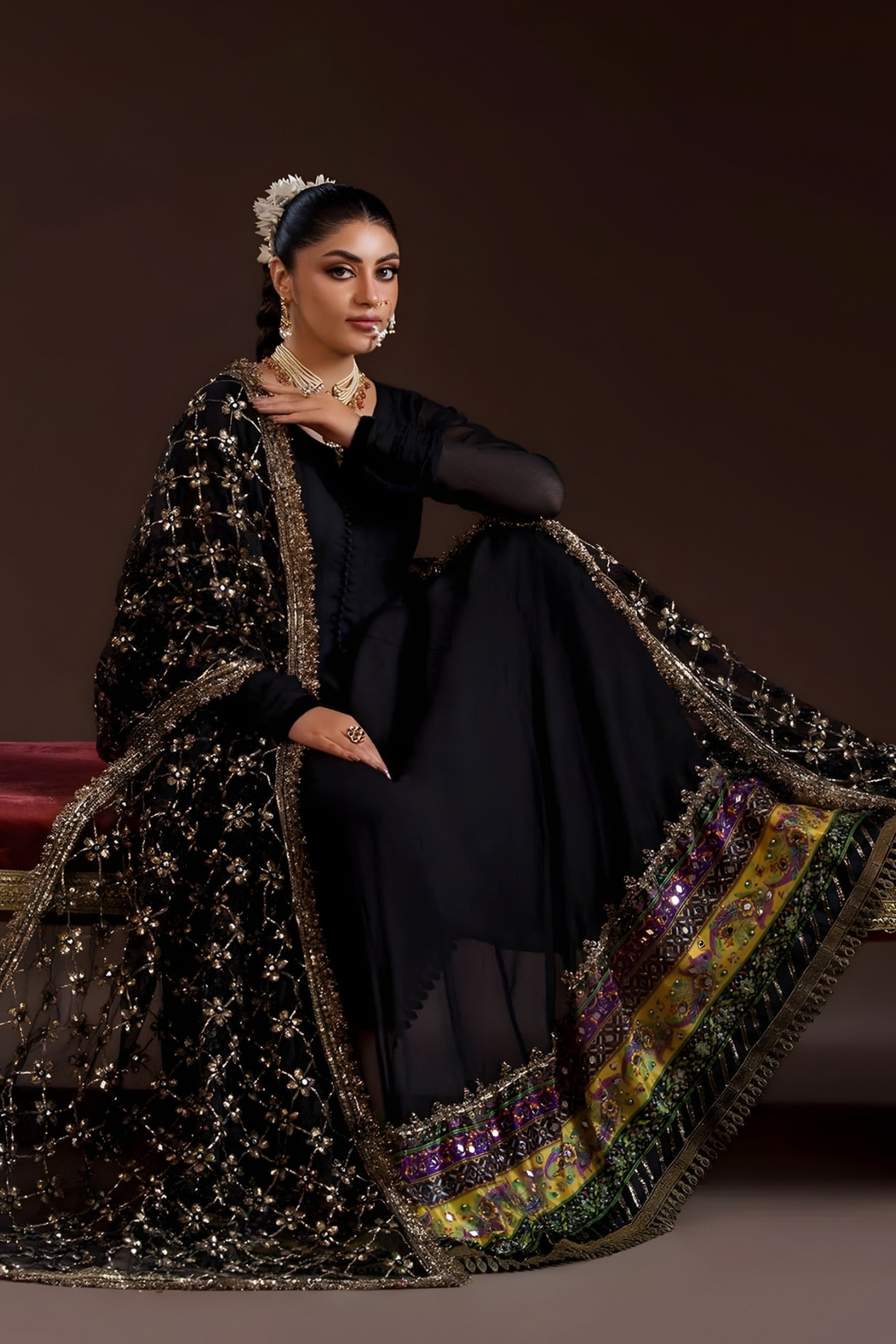 ✨ Black Mirage embodies the enigma of midnight elegance in a vision of timeless beauty. This combination redefines refinement with its slight shimmer and deep black tones. A design created not to impress but to be remembered, each stitch and fold narrating a tale of quiet assurance. Black Mirage, which is ideal for evening events and soirées, honors the power of subtle glitz, where the most basic kind of luxury is achieved.